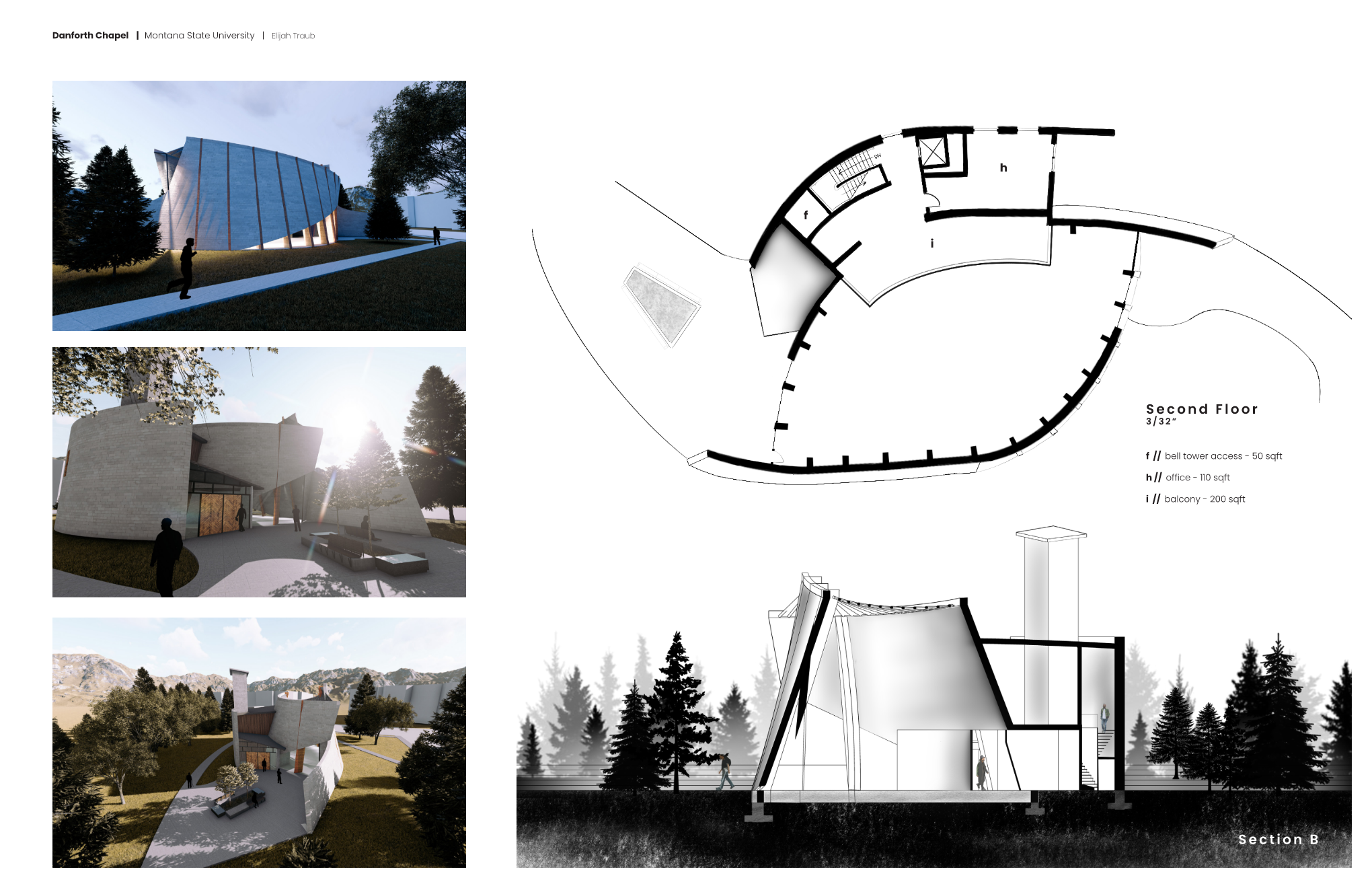 Re-imagined as an inclusive spiritual space, the chapel sits close to the newly developed Native American Indian Hall. The materials chosen for this project were informed by its neighboring hall. It's form and unique roof and structural design will pose as an attractive space for all people from different walks of life.